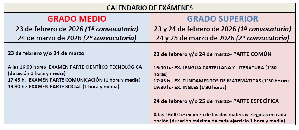 - Tasas de examen: 10,44 € (GRADO MEDIO) 15,67 € (SUPERIOR)