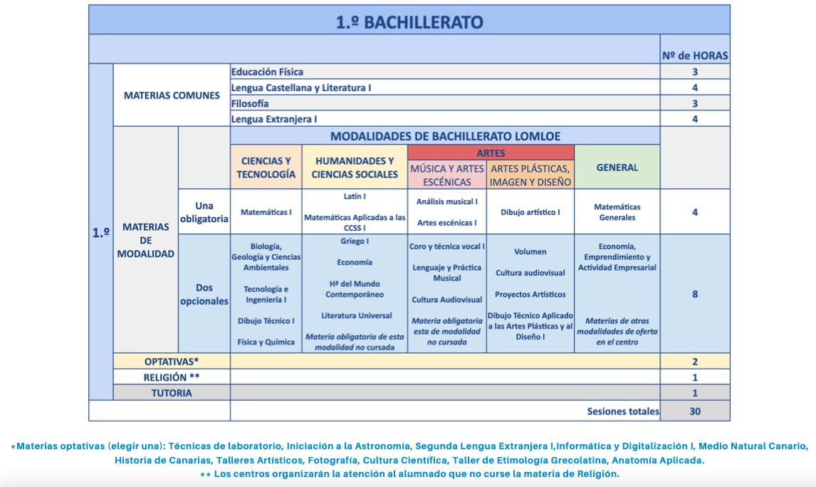 El bachillerato se organizará en....