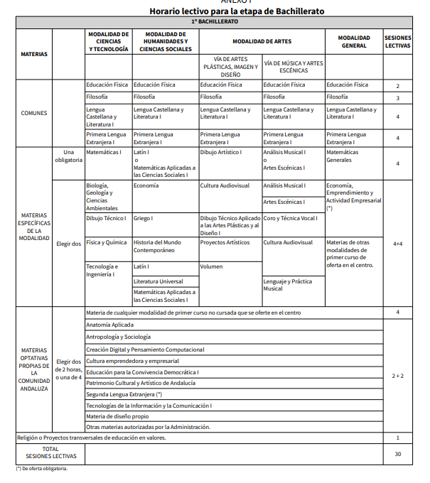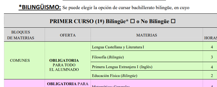 OPTATIVAS MODALIDADES DE BACHILLERATO