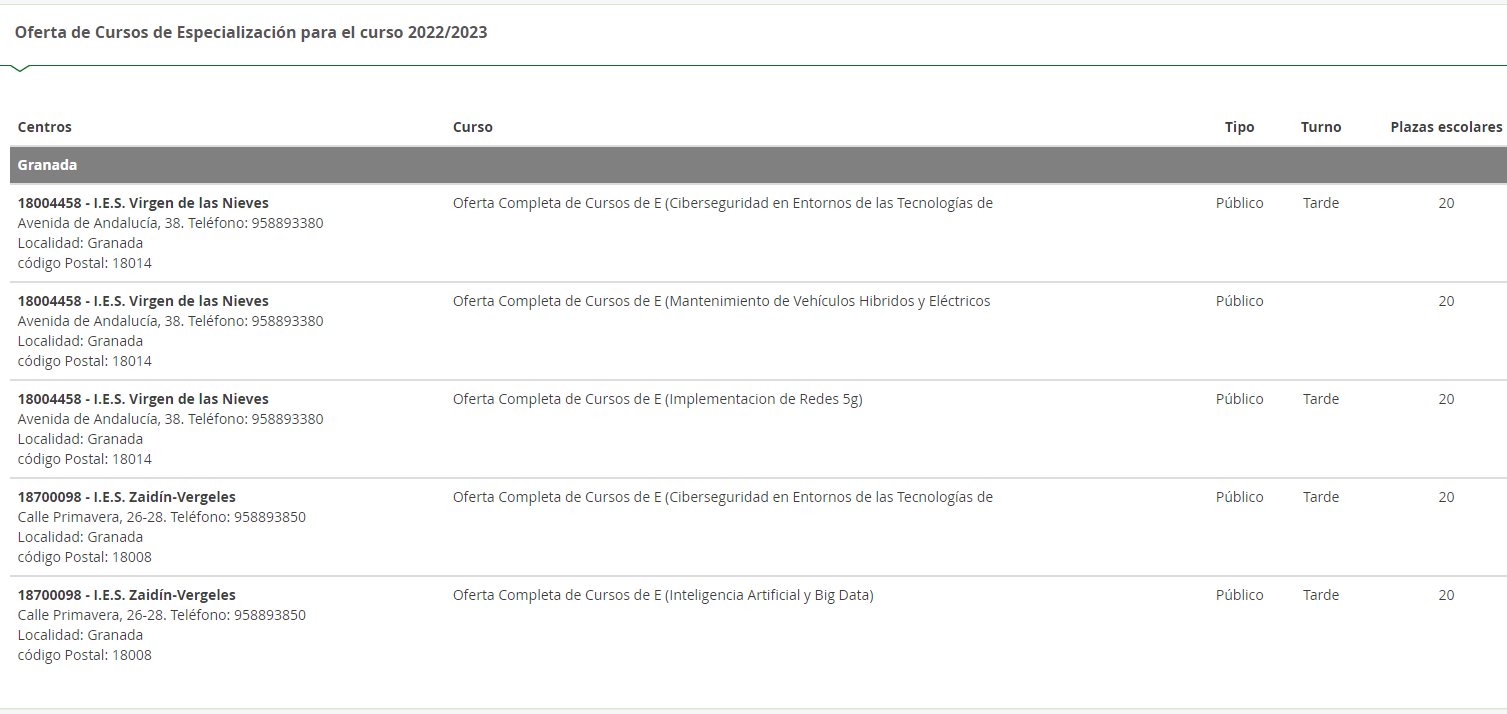 Oferta actualizada ciclos FP Superior Granada 2020-2021 pinche enlace