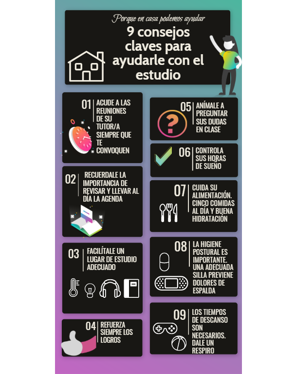 9 consejos clave para ayudarle con los estudios. Porque en casa también podemos ayudar. Elaborado por Rebeca LLamedo