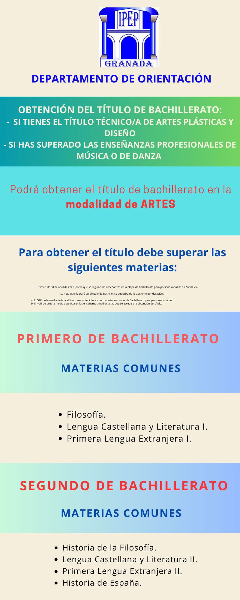 BACHILLERATO DE ARTES GRANADA. OFERTA EDUCATIVA