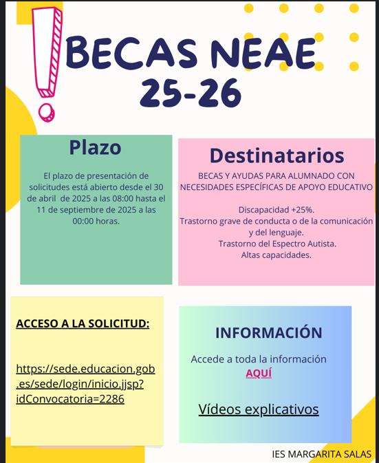ABIERTO EL PLAZO PARA SOLICITAR LA BECA NEAE
