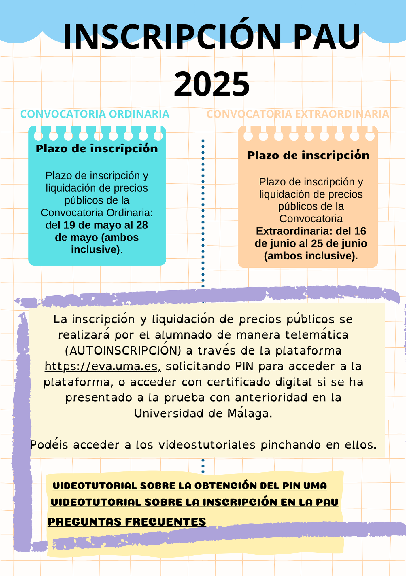 - Convocatoria Extraordinaria: días 1 ,2 y 3 de julio de 2025.
