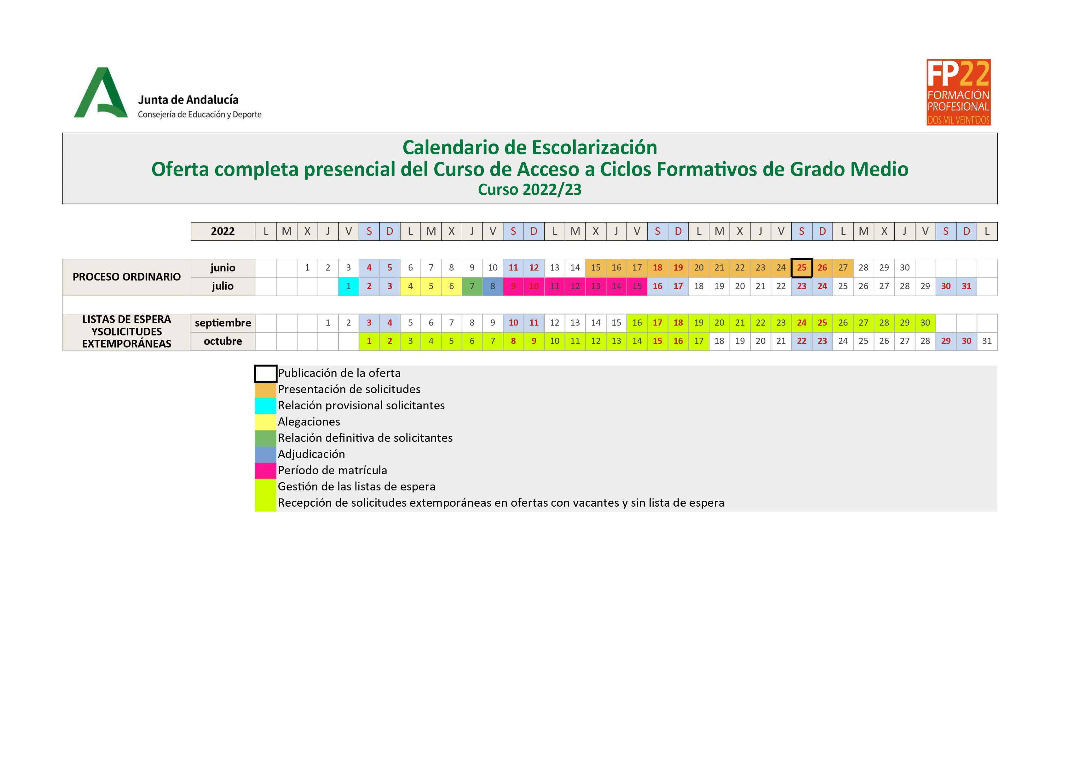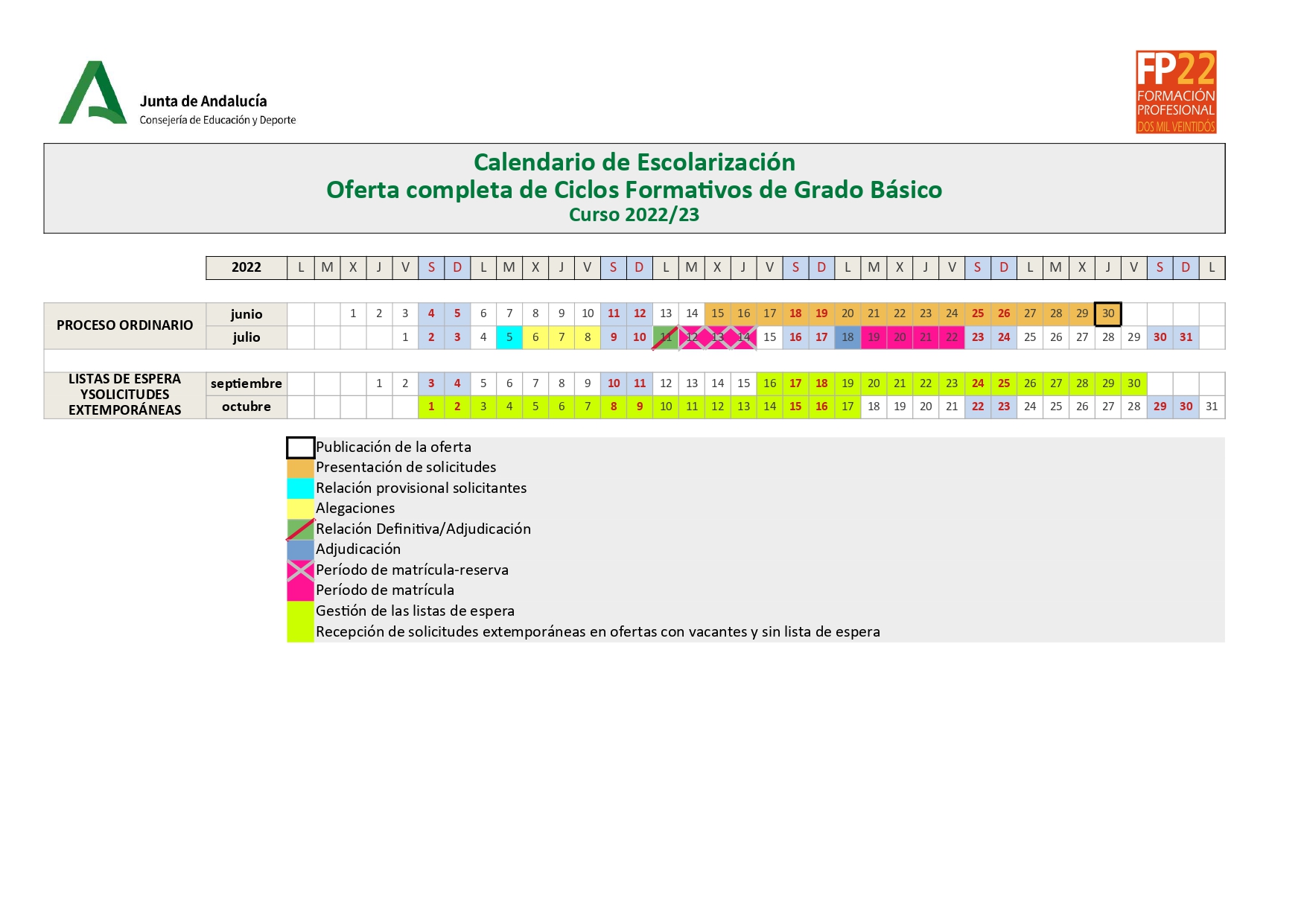 Pincha en el calendario para que no se te pase nada. Más información en la sección: Formación Profesional Básica .