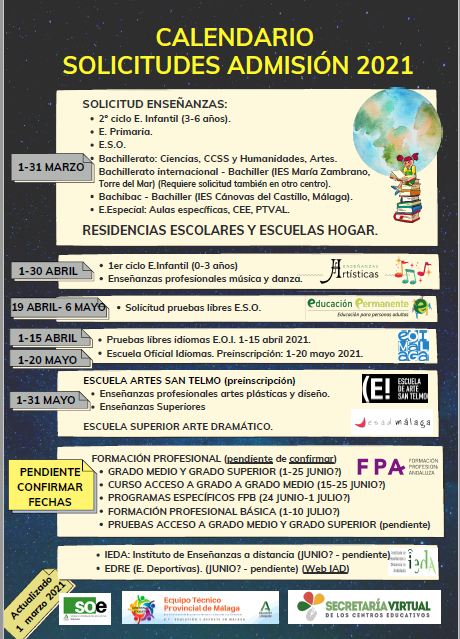 CALENDARIO SOLICITUDES DE ADMISIÓN. Curso 2020-21.