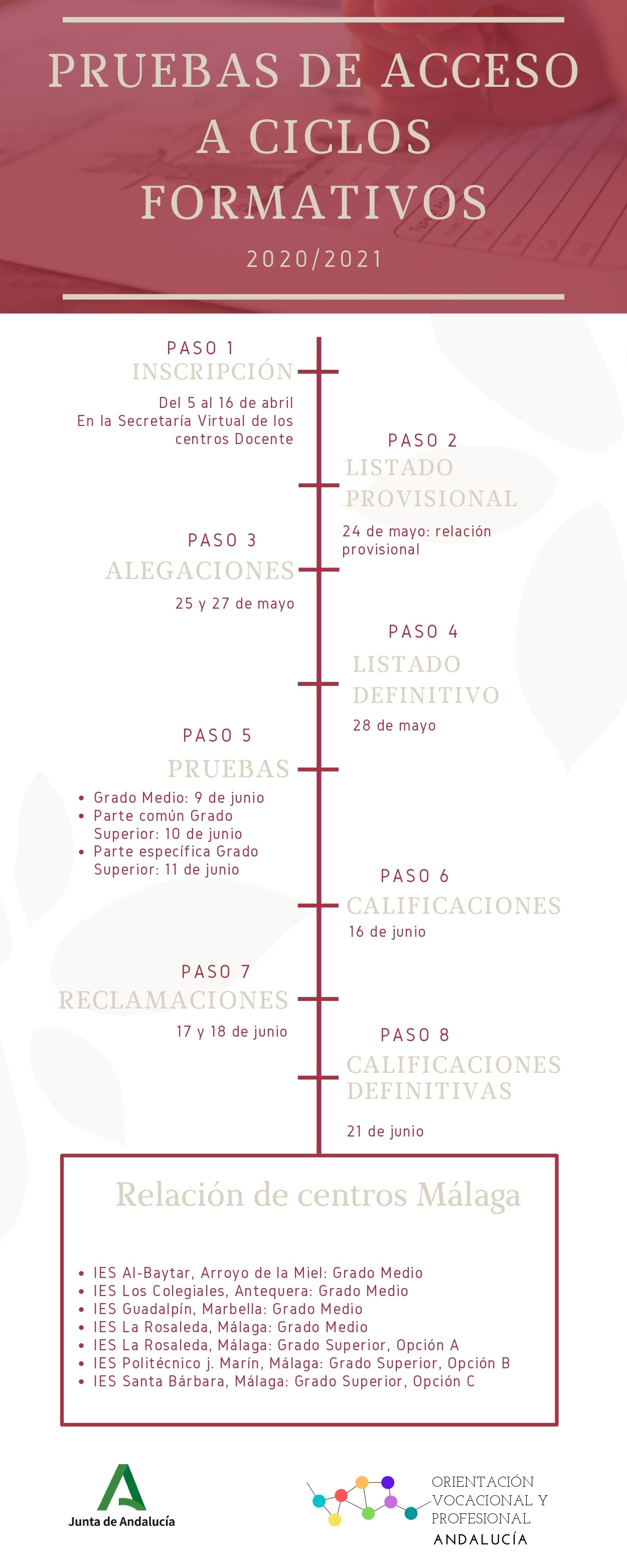 MUY IMPORTANTE: Abierto el plazo de solicitud del curso específico para el acceso a los ciclos formativos de Grado Medio de Formación Profesional. Del 15-25 Junio. Enlace al trámite.