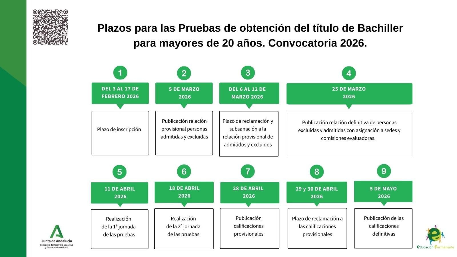 Pruebas libres para obtención del Título de Bachiller para mayores de 20 años -Convocatoria 2026.
