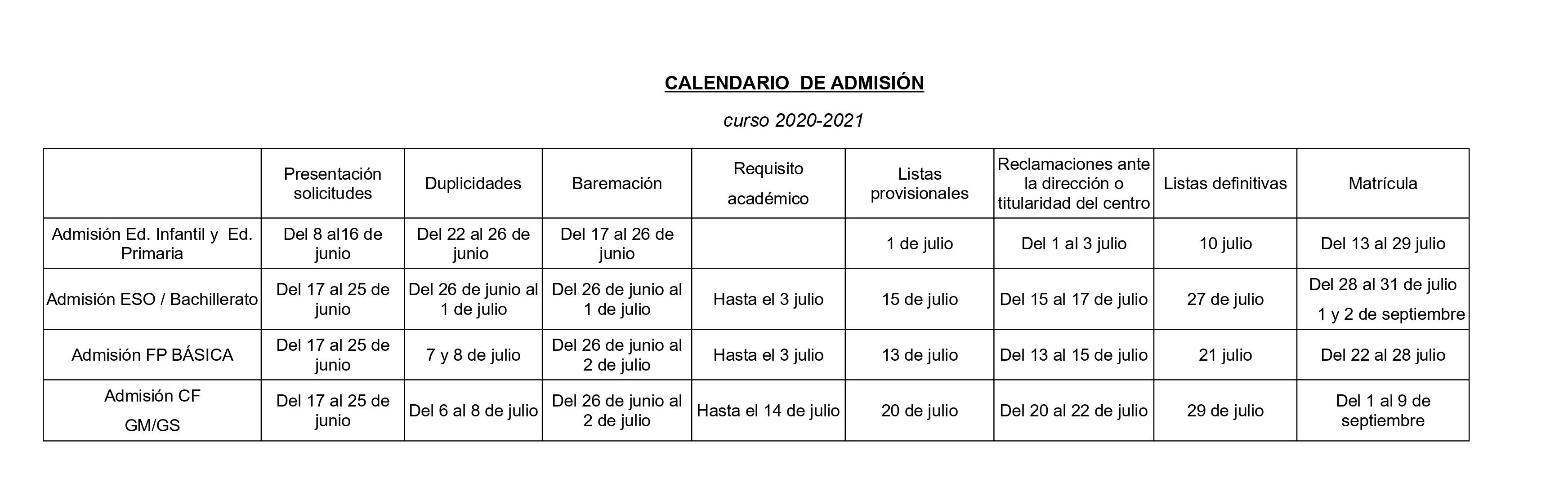 -Les proves de les PAU es realitzaran els dies 7, 8 i 9 de juliol, les notes es faran públiques el 17 de juliol, i el termini per a demanar la revisió serà els dies 18, 20 i 21 del mateix mes. Les notes definitives seran publicades el 24 de juliol. La preinscripció s'obrirà l'1 de juliol i la seua resolució es publicarà el 28 de juliol.