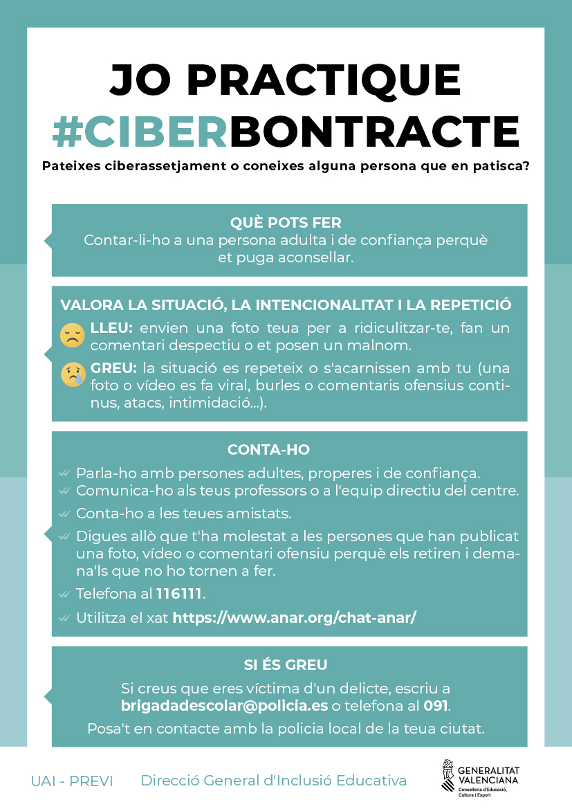 Des de la Unitat d'Atenció i Intervenció del PREVI i des de la direcció general d'Inclusió Educativa, presentem la campanya 'Jo practique #CiberBonTracte'.