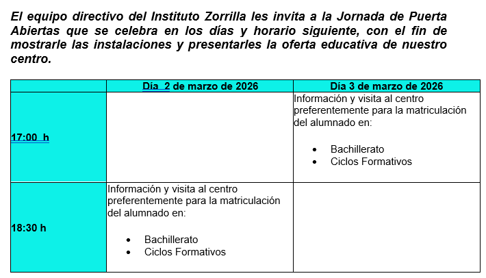 Algunos centros ya están publicando fechas de las Jornadas de Puertas Abiertas, aquí puedes consultar las que se vayan convocando: