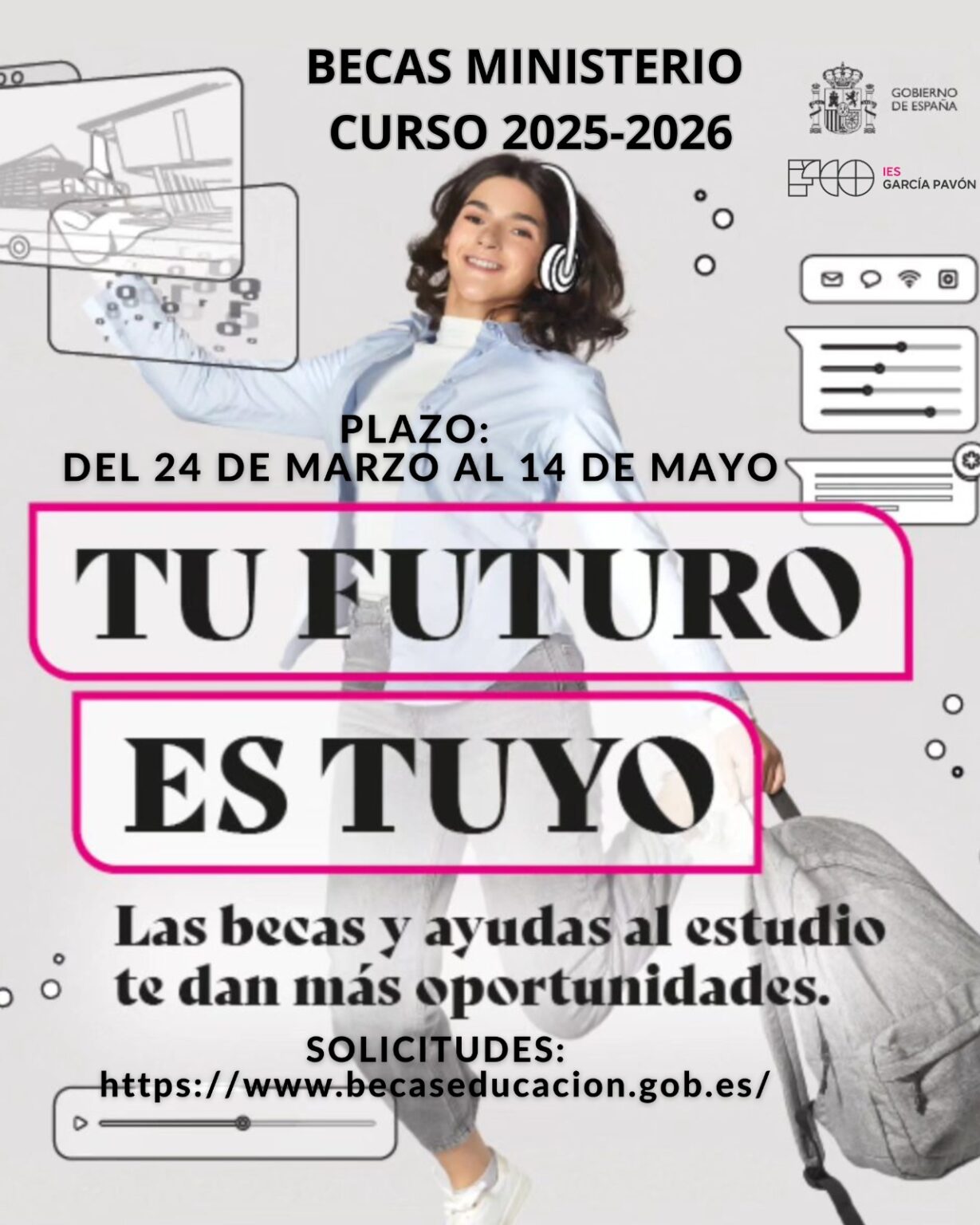Desde el día 24 de marzo de 2025 a las 8,00 hasta el 14 de mayo a las 14,00 hora canaria, estará abierto el plazo para solicitar la beca del Ministerio de Educación y Formación Profesional.