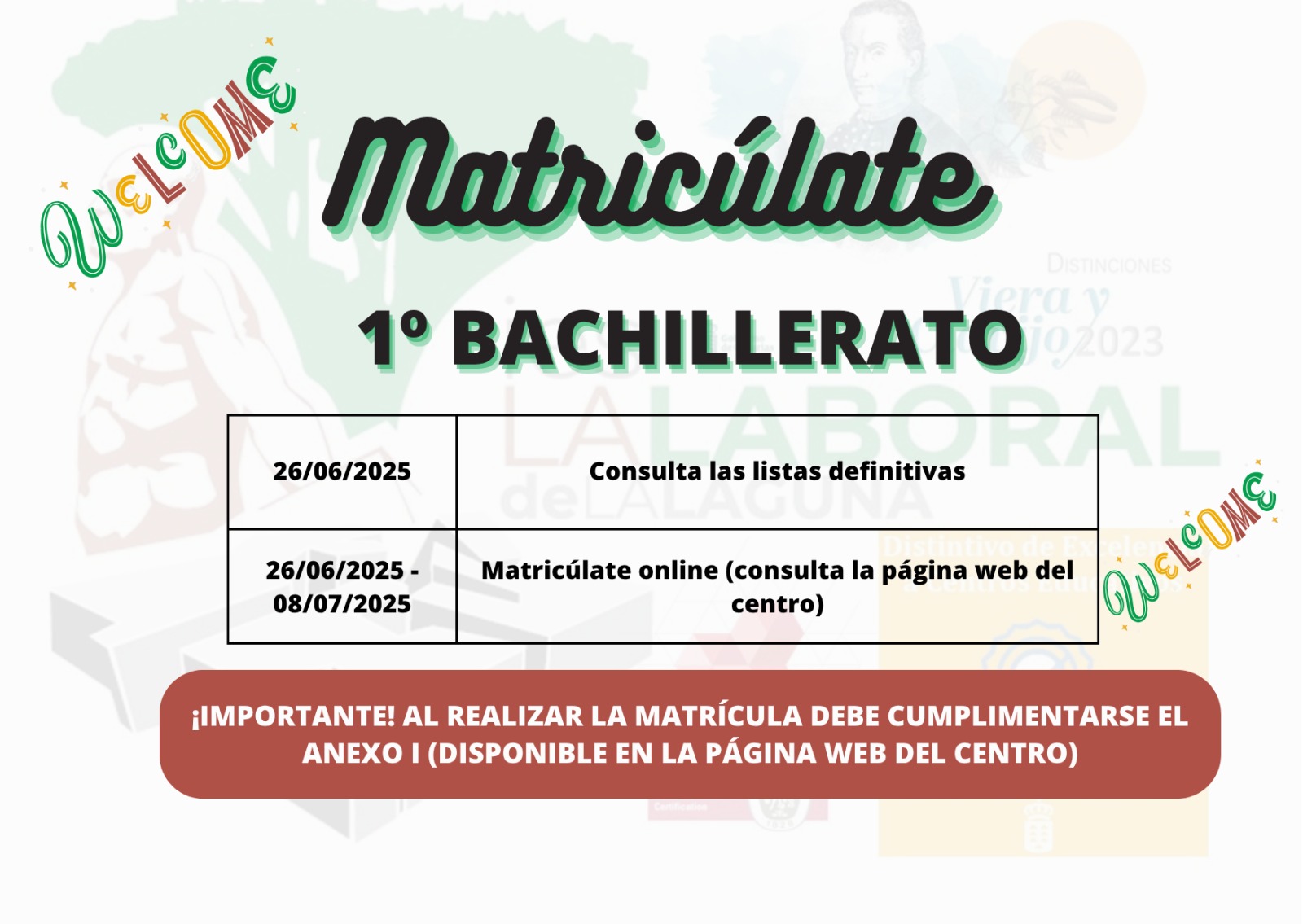 Bienvenidos y bienvenidas al curso 24-25 en el IES La Laboral de La Laguna. Si formas parte de nuestra comunidad educativa, GRACIAS por enriquecer nuestro centro que crece curso a curso con las vivencias de las personas que en algún momento, como tú ahora, decidieron SER en él.